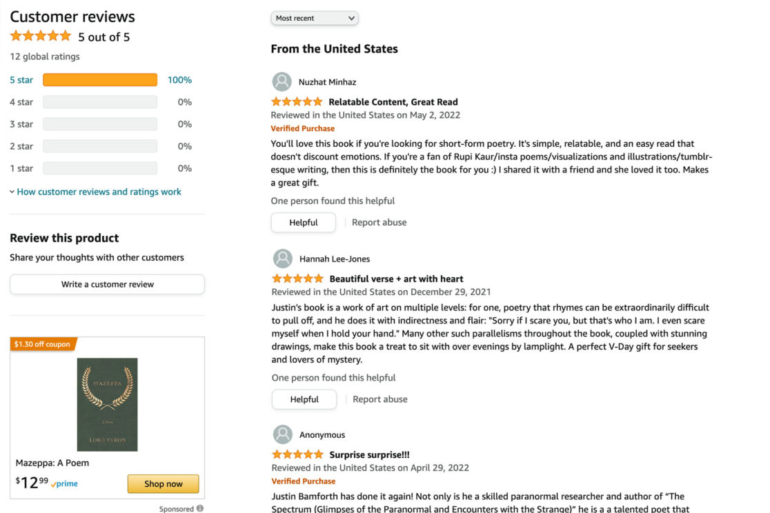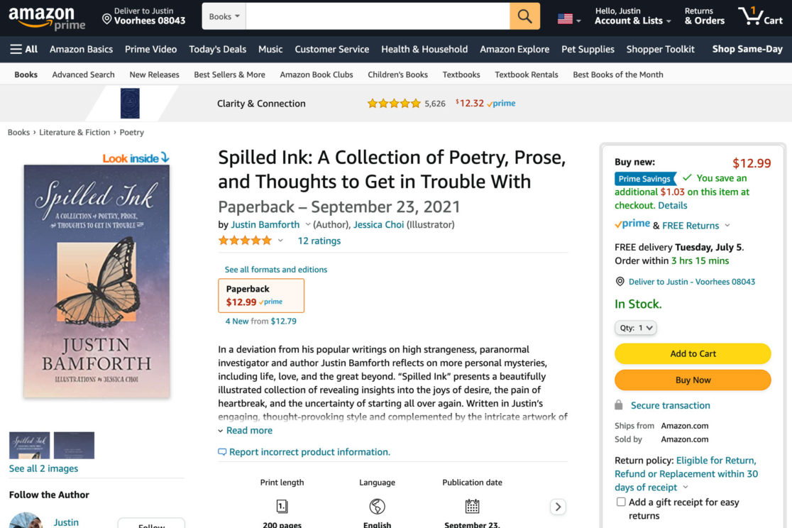 Description: Spilled Ink is my first endeavor into the world of short-form poetry and a deviation from my more popular writings on high strangeness. It contains thoughts and musings on life, love, and the great beyond. In addition to writing the content and designing the layout, I developed a new publishing label, Haunted Owl Press.