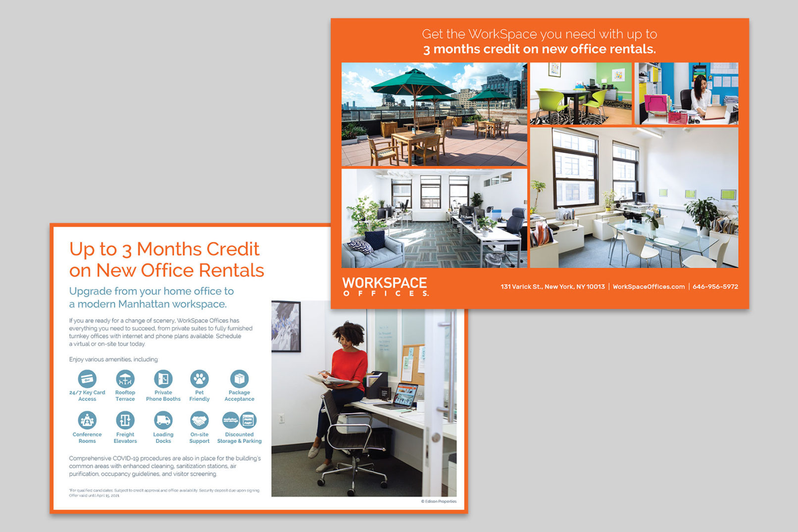 Overview: These are some pieces I developed for the Manhattan office rental company, WorkSpace Offices. The goal was to stay competitive in the marketplace and increase traffic to their Inwood and SoHo locations through various marketing efforts, including direct mail, online videos, and their website.